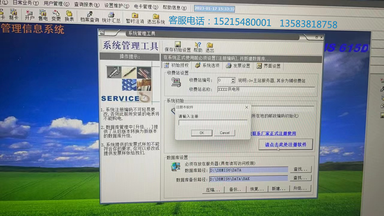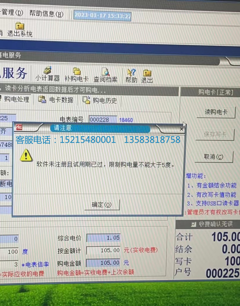 dbmis6软件未注册且试用期已过,限制购电量不能大于5度处理方式咨询客服:15215480001 13583818758
